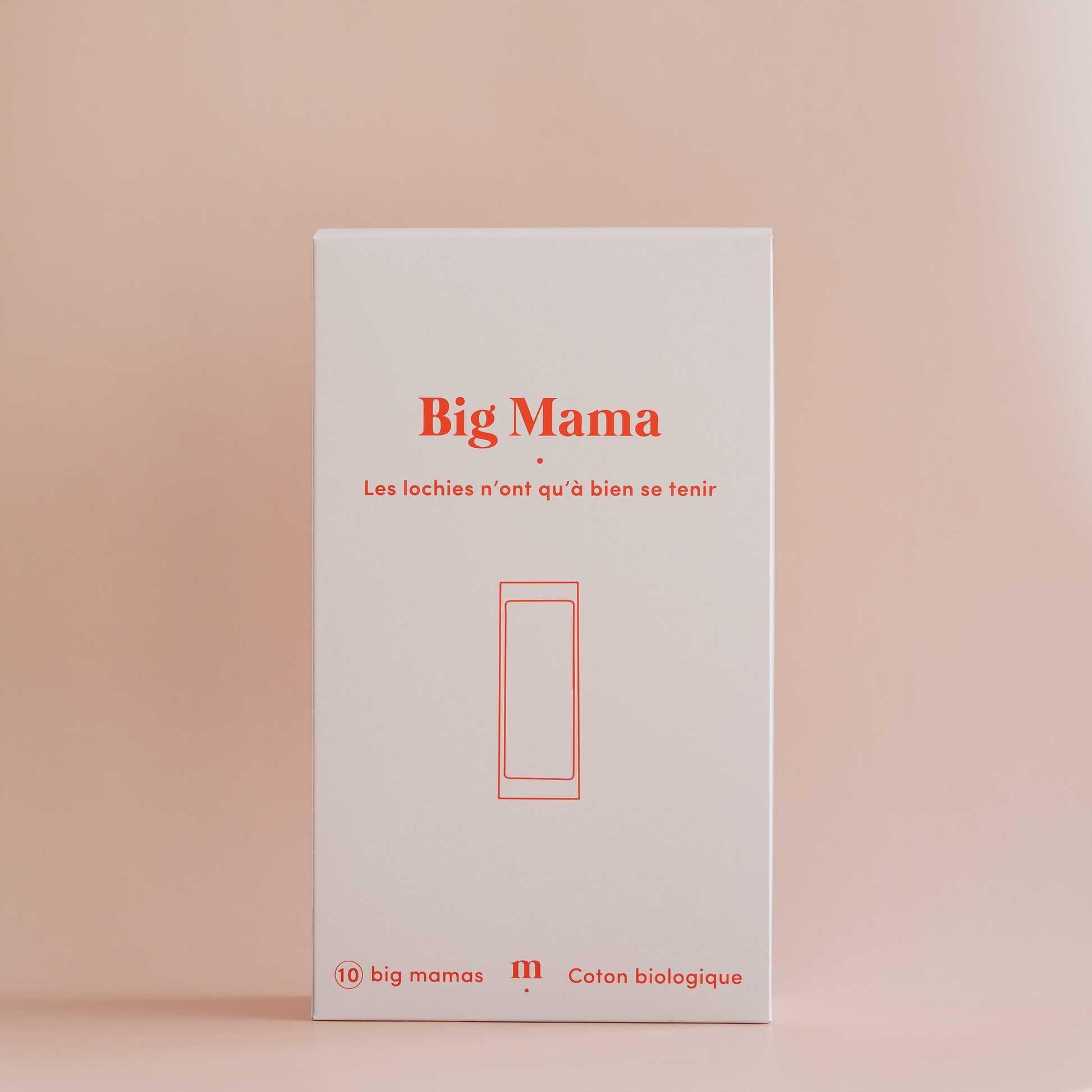 - 10 serviettes hygiéniques Big Mamas : hypoallergéniques, sans parfum ni chlore, pour une absorption optimale.